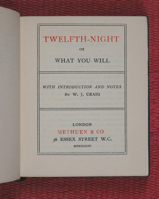 Miniature Book. Shakespeare, William. Twelfth-Night or What You Will. Methuen & Co. 36 Essex Street, W.C. [London]. 1904.