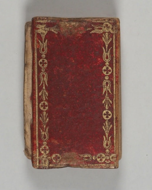 94 printed pages in French. Five fine copper engraved plates. Printed by Eberhart, rue du Foin, no.12. All edges faded gilt. Complete with original matching slipcase (worn at corners and missing bottom rectangular section). 32 x 45 mm. Original red cartonnage binding; covers with gilt tulip flowers and leaves within gilt miterd panels. Rubbed and lacking spine. Bondy, 77. Spielmann, 404. Welsh, 5605.